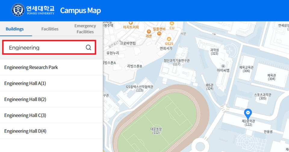 Tip: When searching or entering building names, type the full name or a part of the full name of the building for accurate results (e.g. Baekyang, Engineering, New Millennium, etc.)